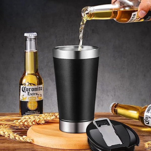 Copo de Inox com Tampa e Abridor de Cerveja – 650 ML